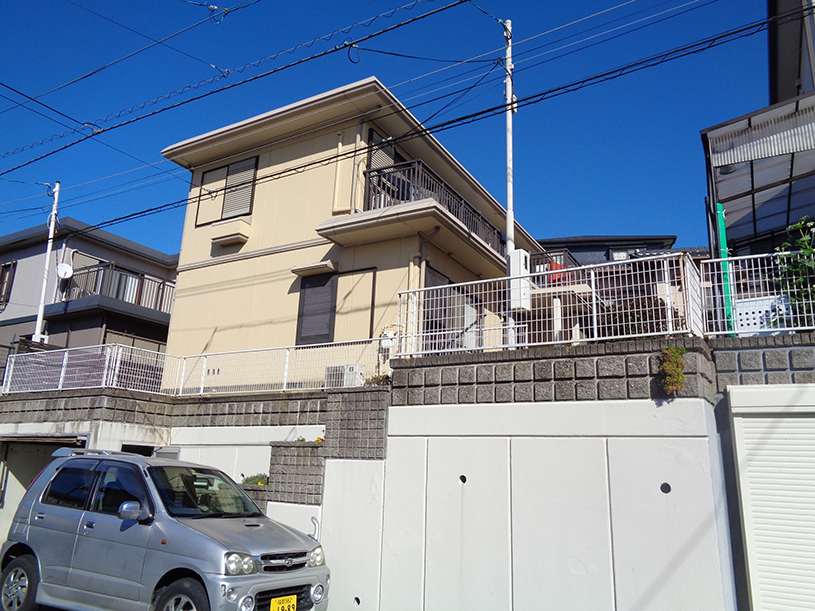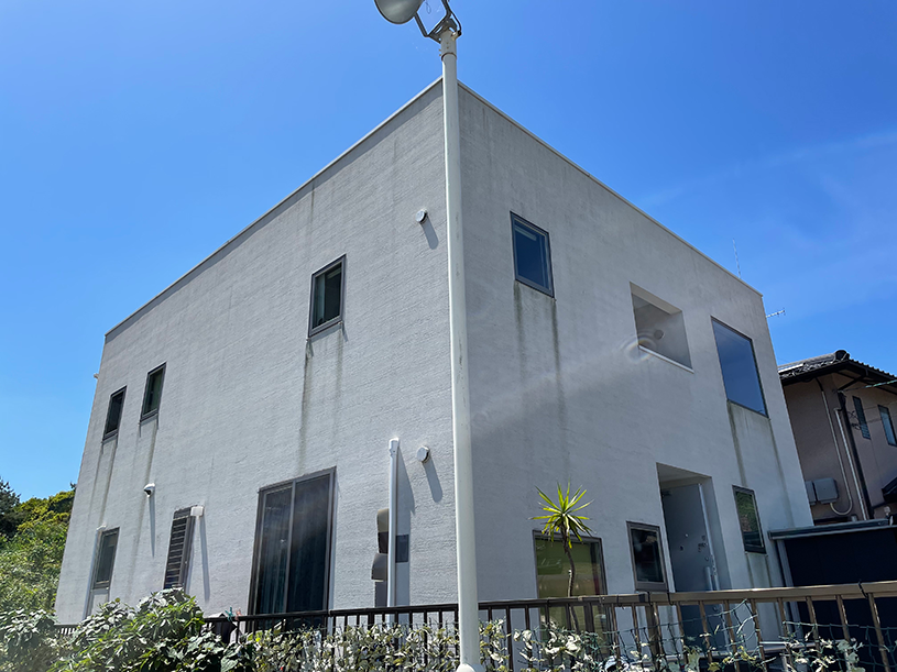 築30年以上経過し、黒カビの発生と色が褪せて痛んでいた外壁の塗替えをさせていただきました。